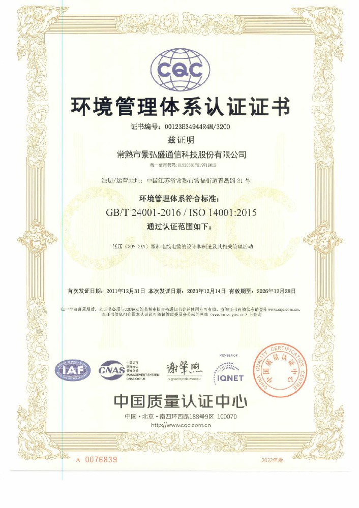 環(huán)境管理體系證書